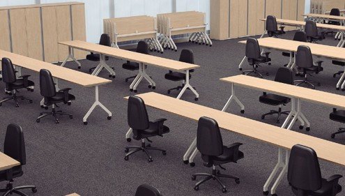 As mesas dobráveis são mesas com o tampo rebatível e base móvel, podendo ser facilmente deslocadas para qualquer espaço de uma sala, de modo que fiquem justapostas ocupando o menor espaço possível. Esse mobiliário se adequa perfeitamente a ambientes que precisam alterar seu layout ao longo do tempo. As mesas também podem ter sua articulação na base, possibilitando o empilhamento e o fácil armazenamento.